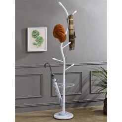 Kleiderständer TRIANA Mit 6 Kleiderhaken Und Schirmständer, Weiß