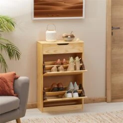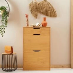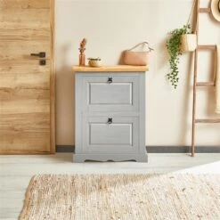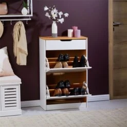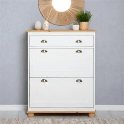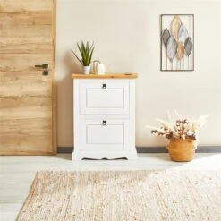 Schuhkipper BASIL Mit 2 Kipper Und 1 Schublade In Weiß, Kiefer Massiv