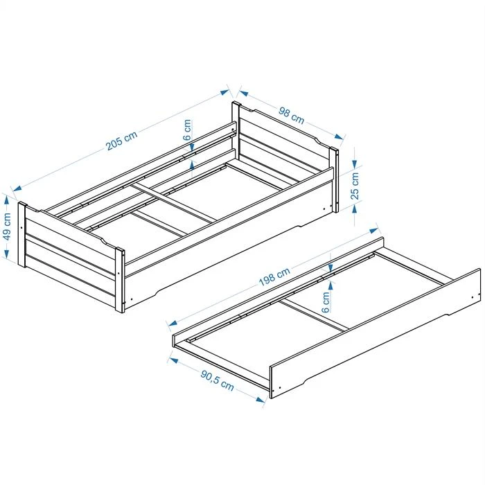 - Stellmaß: 98,5 x 48 x 205 cm (B x H x L)