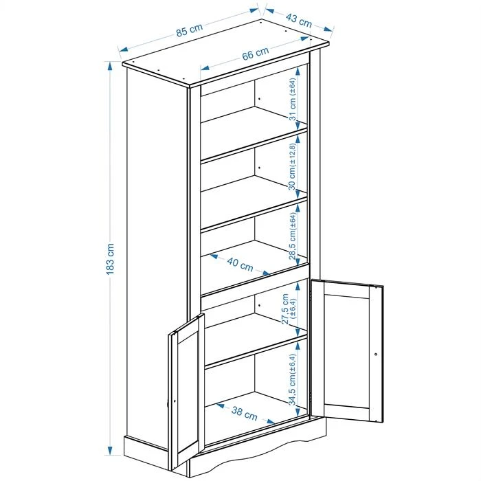 - Aufbaumaße: 85 x 183 x 43 cm (B x H x T)