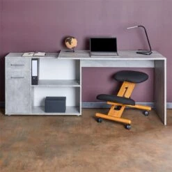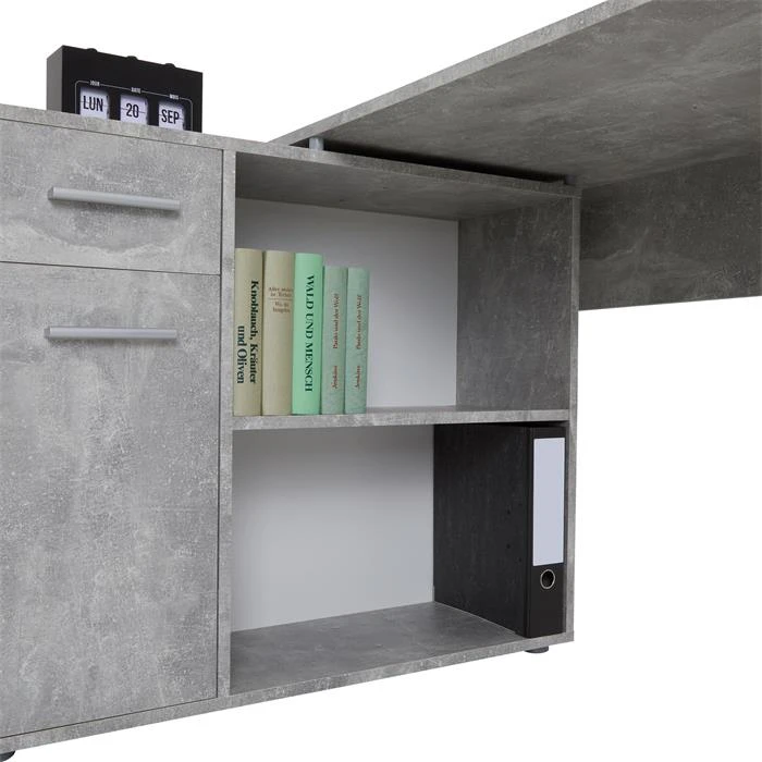 Eckschreibtisch ISOTTA Mit Regal In Betonoptik