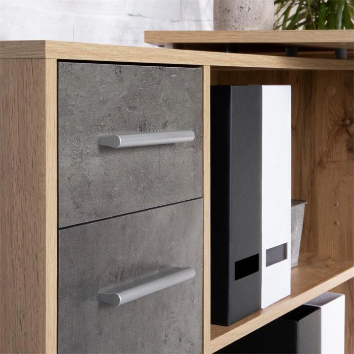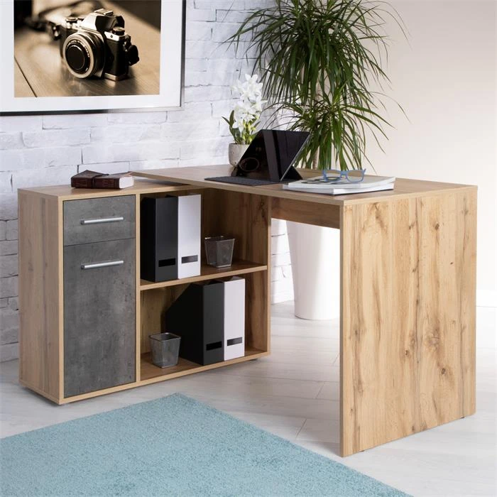 Eckschreibtisch ISOTTA Mit Regal In Wildeiche/Beton Dunkel