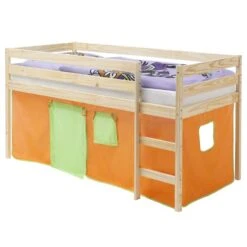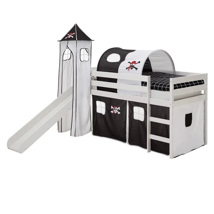 Hochbett Mit Rutsche BENNY Weiß, Vorhang, Turm U. Tunnel Pirat