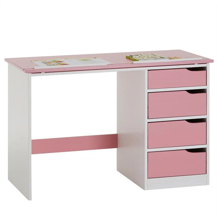 Kinderschreibtisch EMMA Aus Kiefer Massiv In Weiß/rosa, Neigungsverstellbar