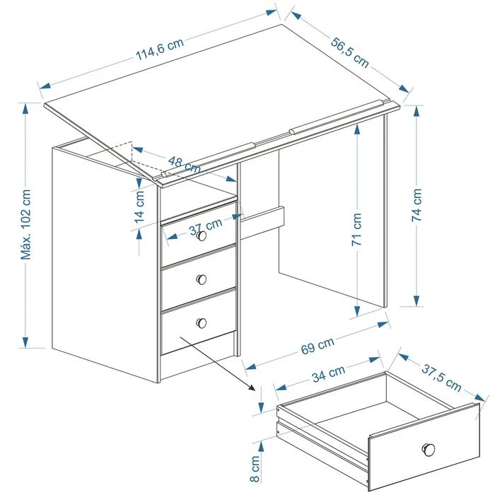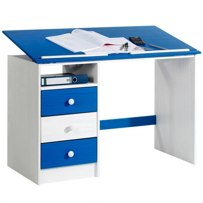 Kinderschreibtisch KEVIN Neigungsverstellbar Weiß/blau