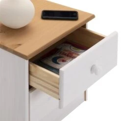 Nachttisch RONDO Aus Kiefer Mit 2 Schubladen, In Weiß/braun
