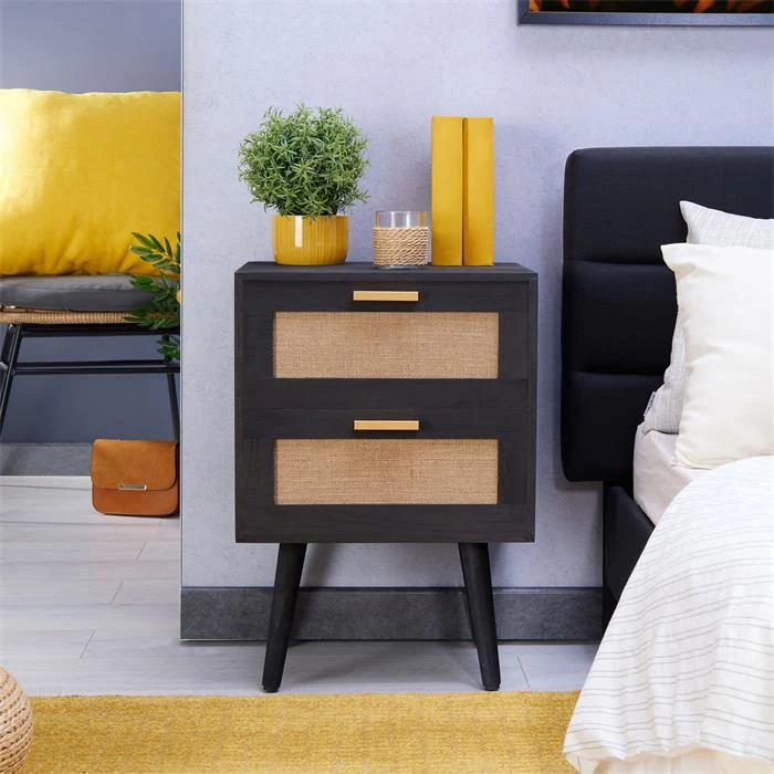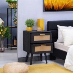 Nachttisch WAMAN Mit 2 Schubladen, Schwarz