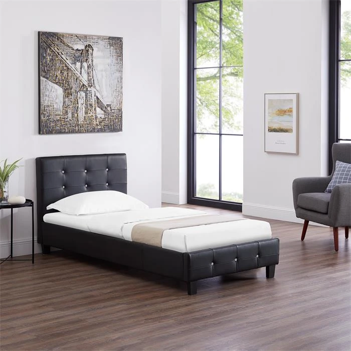 Polsterbett GLASGOW 90×200 Cm, Kunstleder In Schwarz