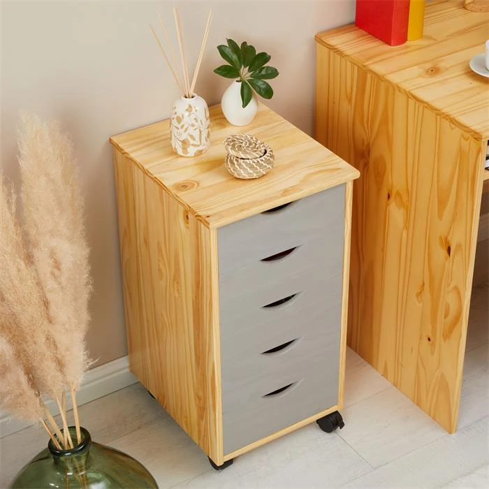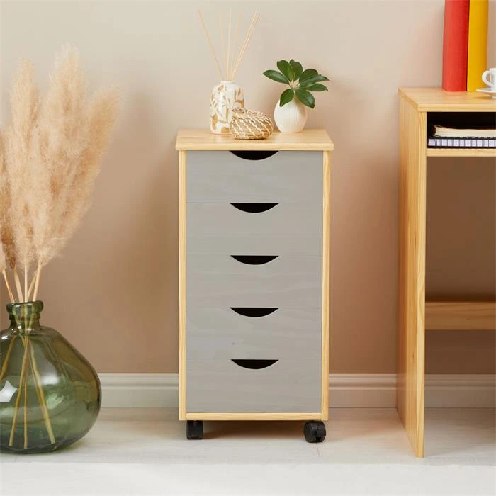 Rollcontainer LAGOS Mit 5 Schubladen In Natur/grau