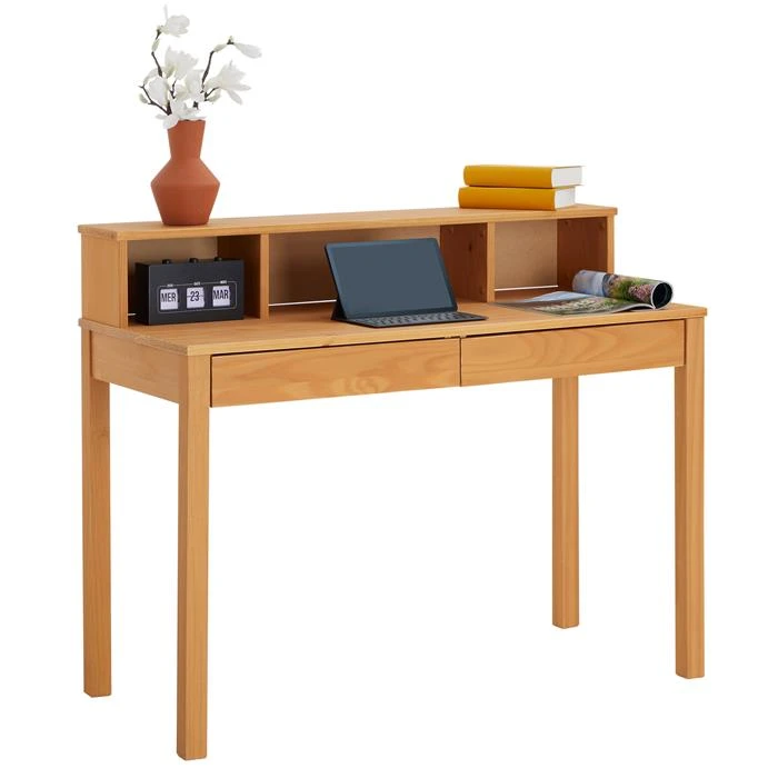 Schreibtisch LENNOX Mit 3 Nischen Und 2 Schubladen In Braun