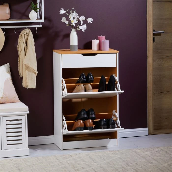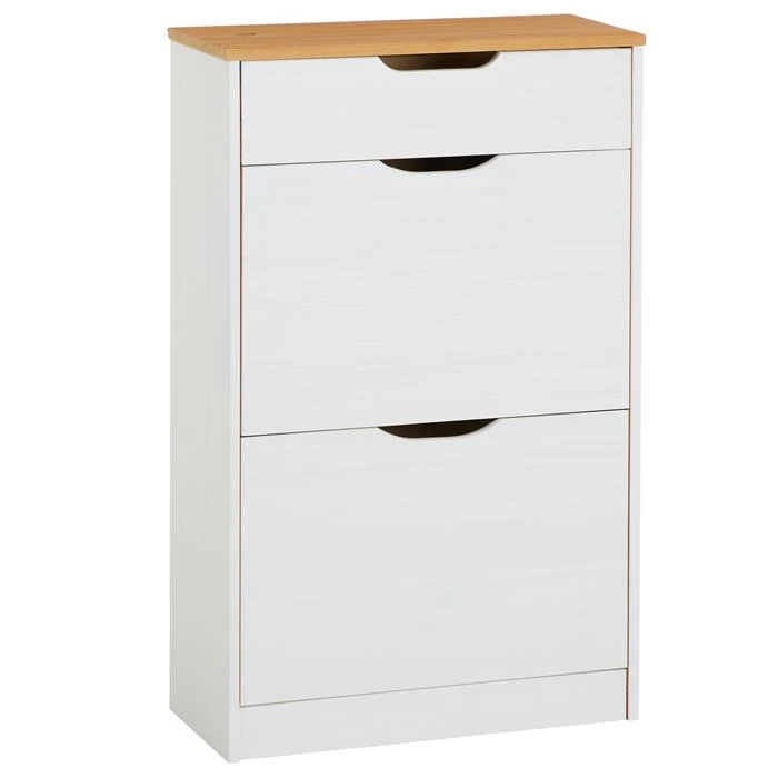 Schuhkipper BASIL Mit 2 Kipper In Weiß/braun, Kiefer Massiv