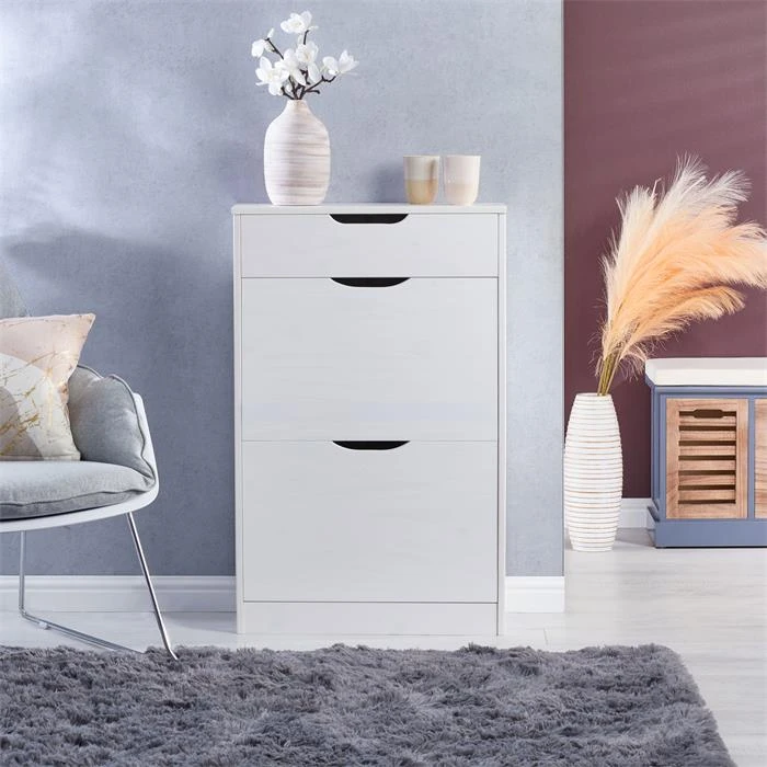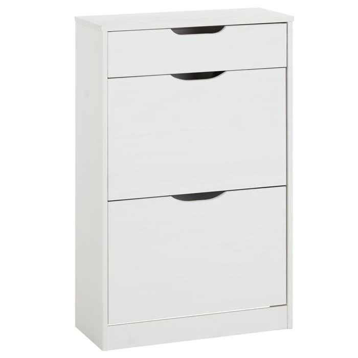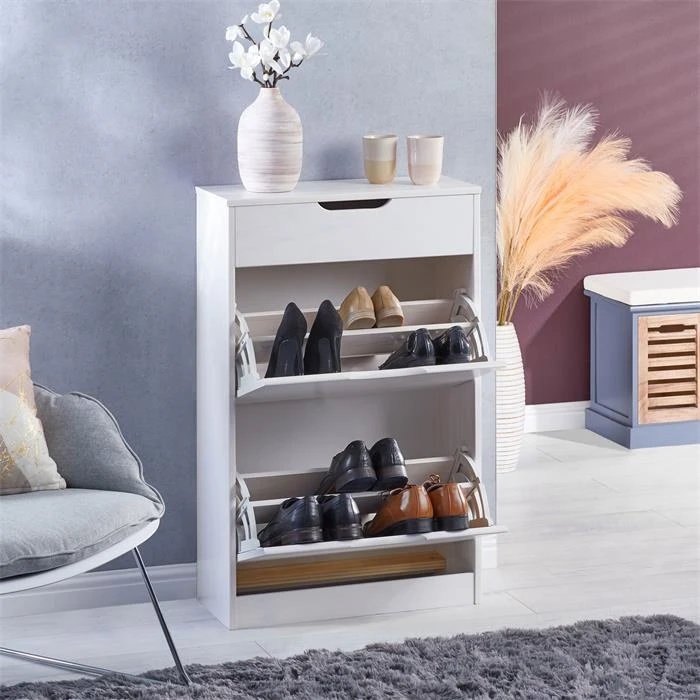 Schuhkipper BASIL Mit 2 Kipper Und 1 Schublade In Weiß, Kiefer Massiv