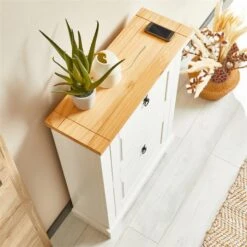 Schuhkipper TEQUILA, Kiefer Massiv, Weiß/braun, Mit 2 Klappen, Mexiko
