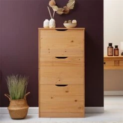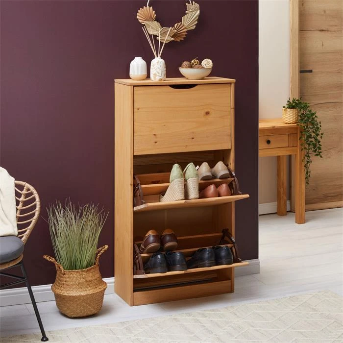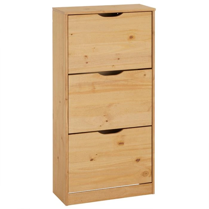 Schuhschrank BASIL Mit 3 Kipper In Braun, Kiefer Massiv