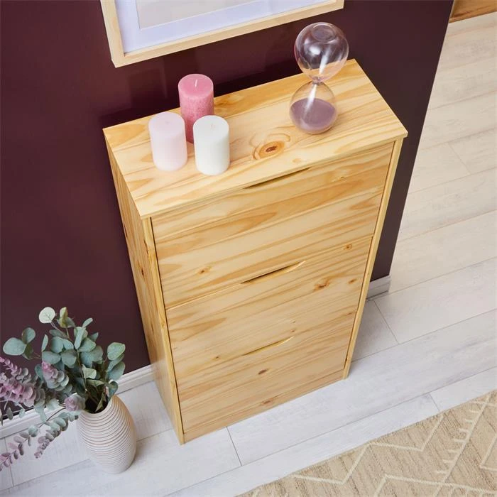 Schuhschrank BASIL Mit 3 Kipper In Natur, Kiefer Massiv