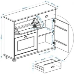- Aufbaumaß: 106 x 84,5 x 32 cm (B x H x T)