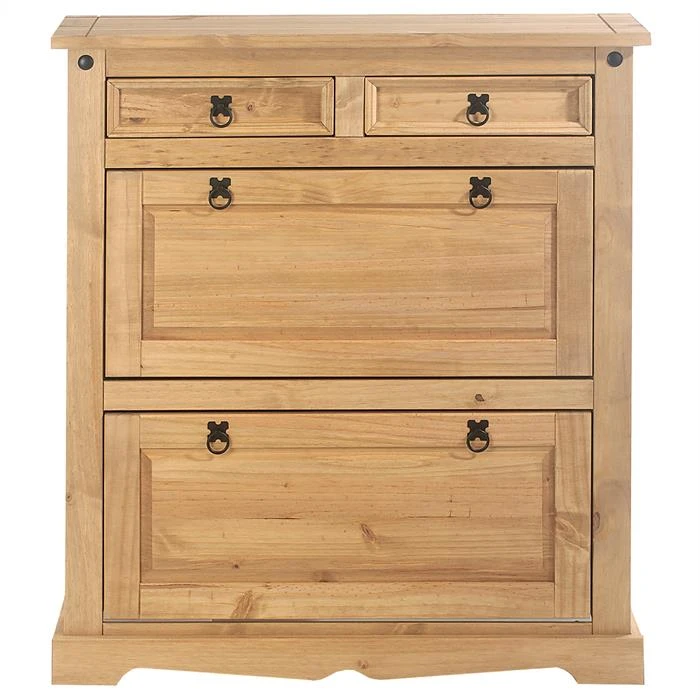 Schuhschrank TEQUILA, Kiefer Massiv, 2 Klappen Und Schubladen, Mexiko