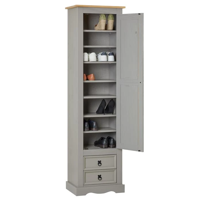 Schuhschrank TEQUILA, Kiefer Massiv Grau/braun, Mit 2 Schubladen Und 8 Fächer, Mexiko